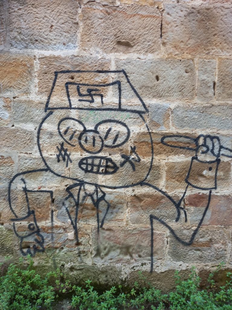 Frommknecht destaca que “la limpieza viaria, y más aún si es de los edificios públicos, es una competencia inexcusable municipal, y esas pintadas no hacen más que endurecer el paisaje, perpetuar la radicalidad, enaltecer la violencia, menospreciar a las víctimas, amenazar gravemente a personas por el ejercicio de sus cargos y su mera existencia supone la demostración de un grave problema democrático en la localidad”.